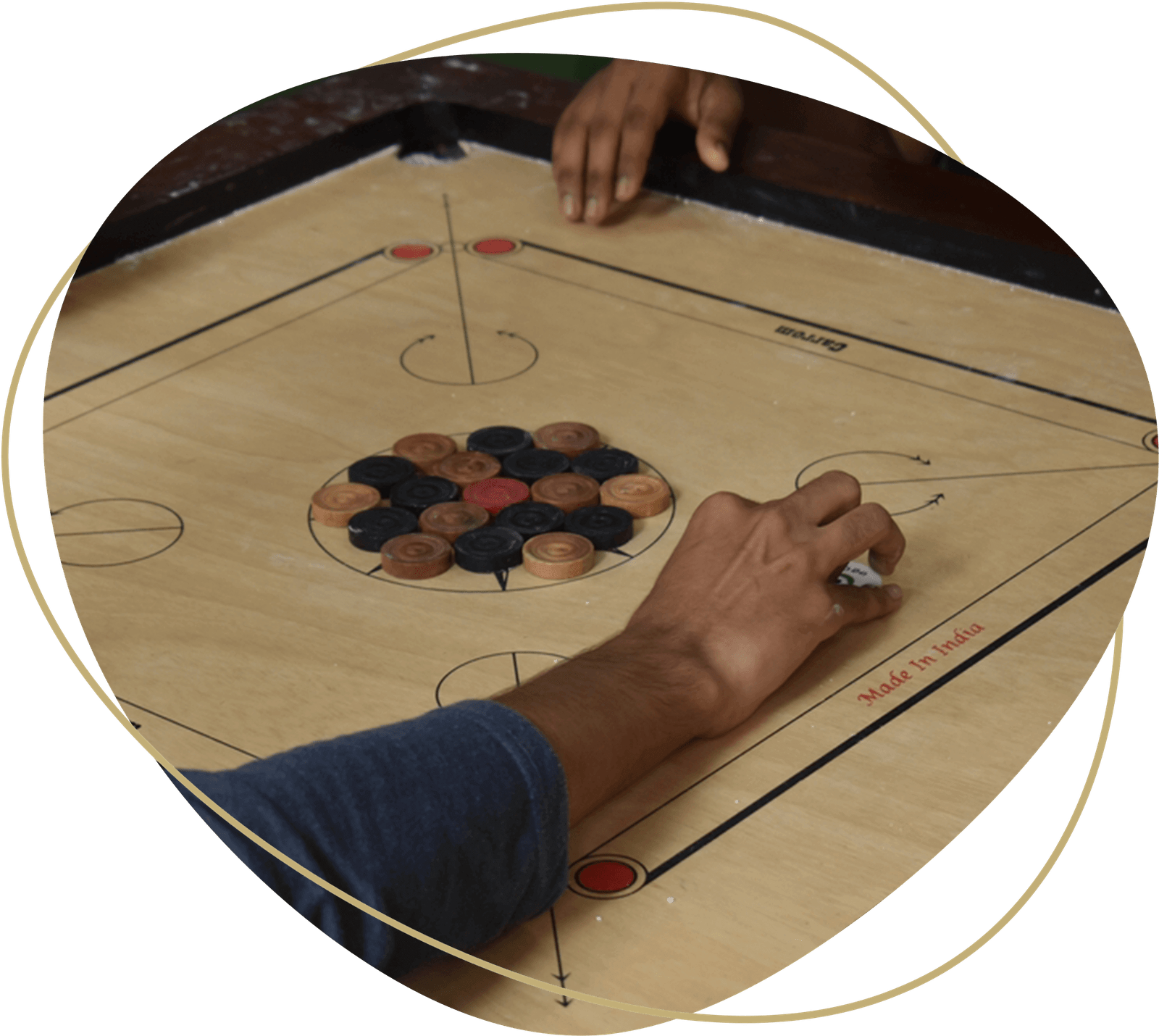 Challenge your companions to a game of Carrom and showcase your skills.