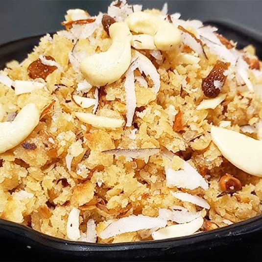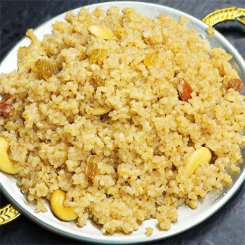 A comforting dish made from broken wheat cooked with ghee and sugar.
