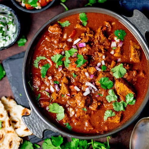 A tangy, spiced meat curry with yogurt, perfect with rice or naan.